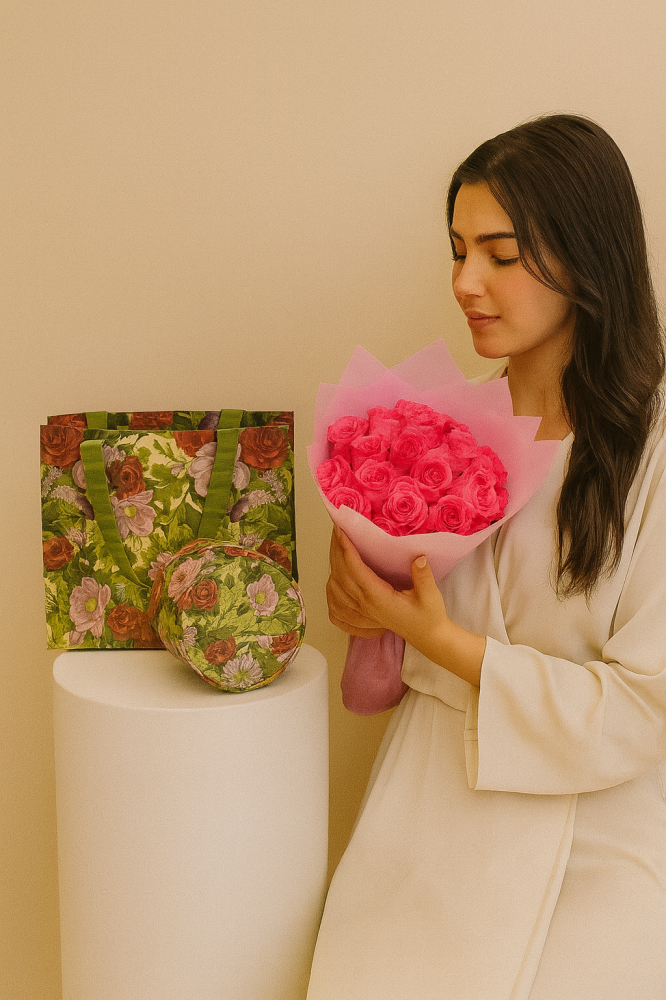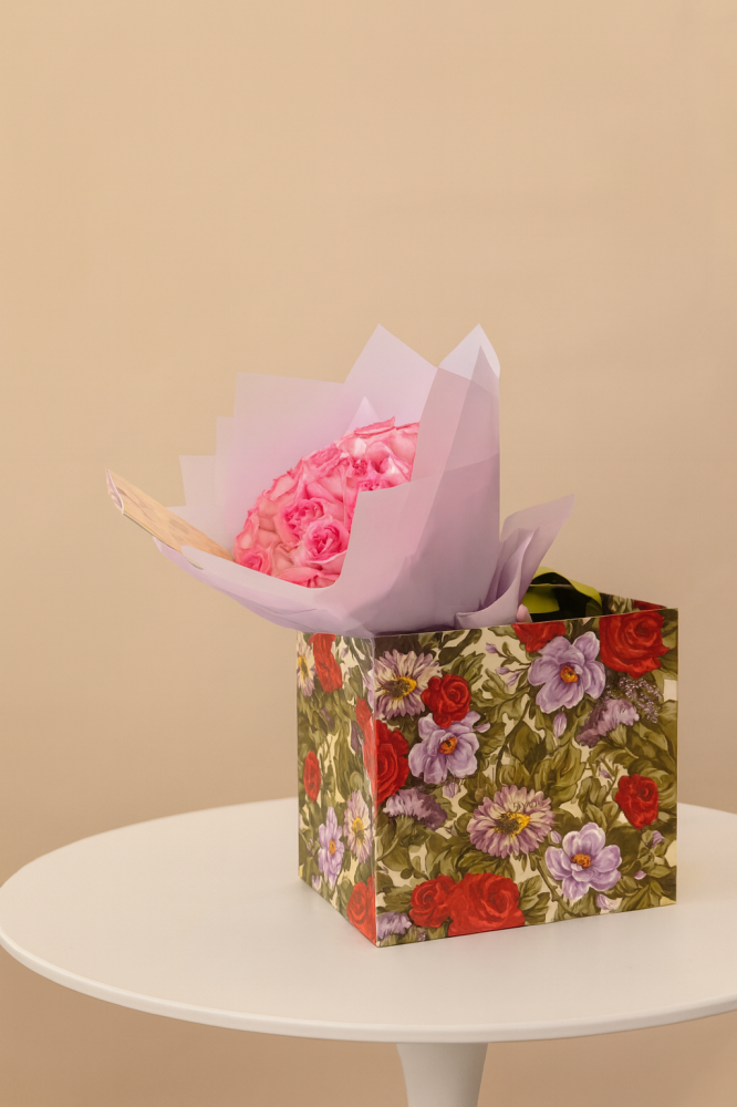 المزيدبوكيه فاخر من ورد الجوري الوردي بتصميم أنيق ولمسة ناعمة تعبّر عن الرقي والمشاعر الجميلة. يمكن تغيير لون الورد حسب الرغبة لتناسب ذوقك الخاص.يُقدَّم مع ...